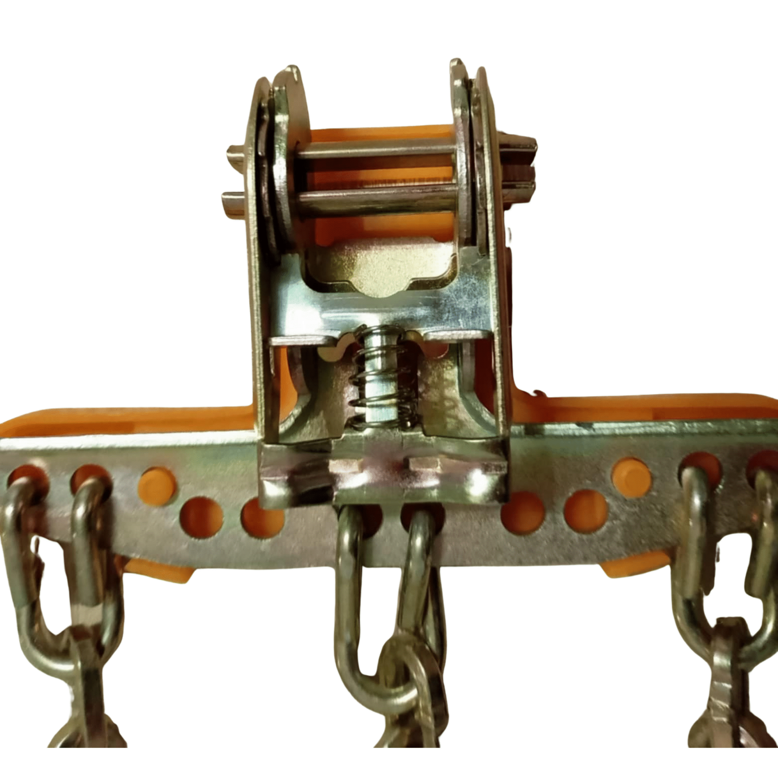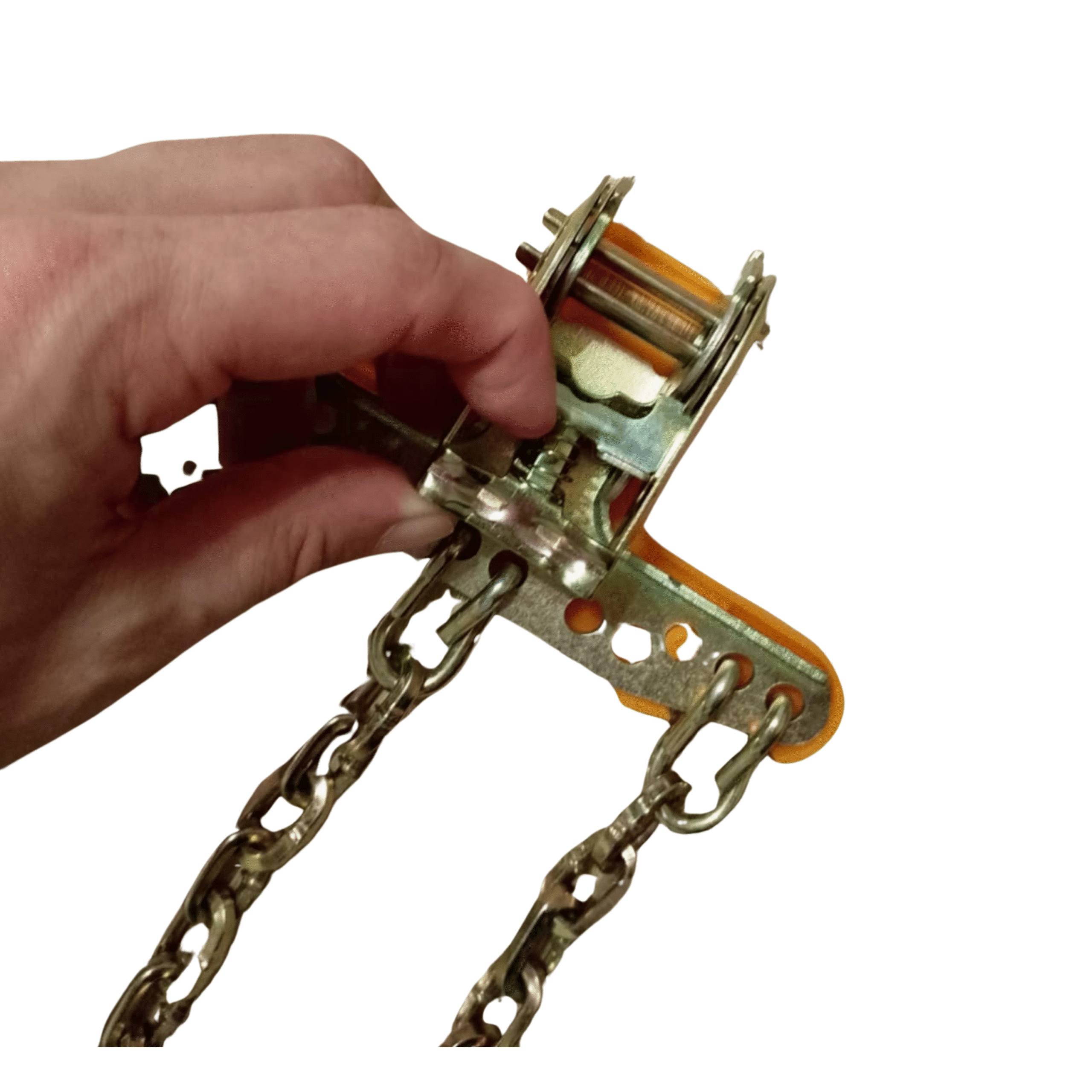 Instalacja łańcuchów jest błyskawiczna dzięki automatycznemu napinaczowi: