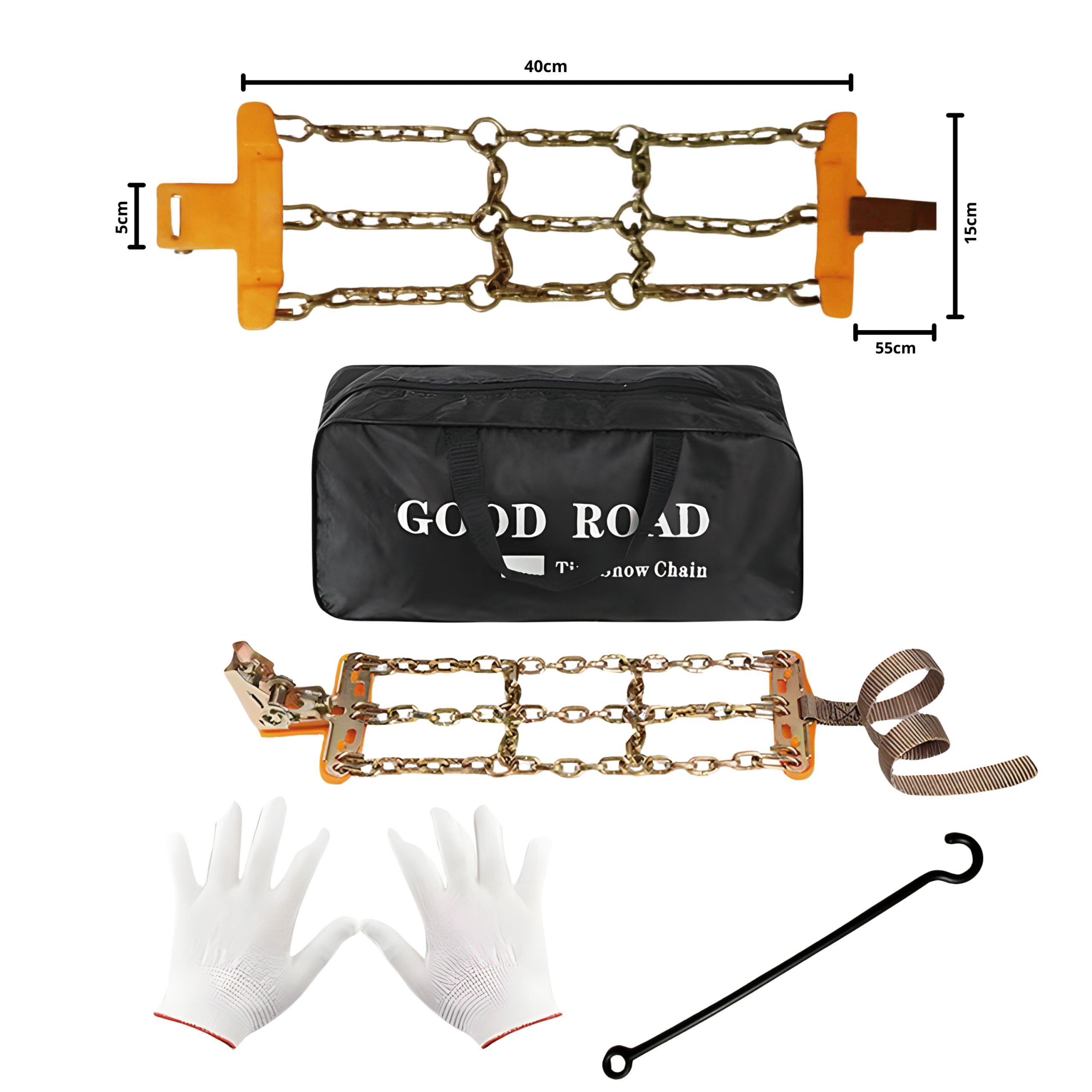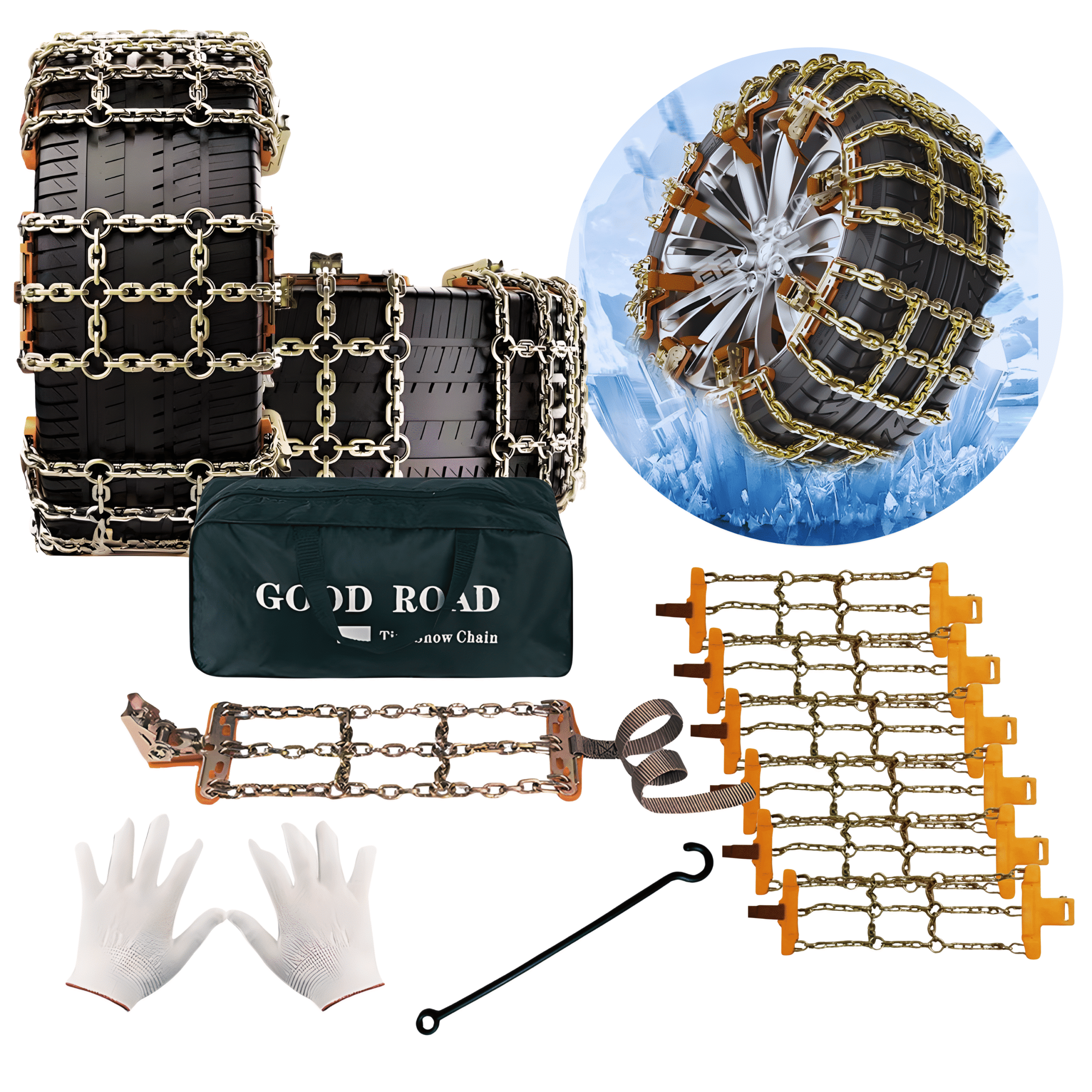 Wzmocnione łańcuchy antypoślizgowe ze stali manganowej zapewniają wyjątkową przyczepność na śniegu i lodzie, wykorzystując mocny wzór kratki oraz automatyczny napinacz ułatwiający szybki montaż bez użycia lewarka. Zestaw zawiera 6 nakładek, rękawice, hak montażowy oraz torbę, dzięki czemu jest od razu gotowy do użycia. Przeznaczony do opon 205–235 mm, gwarantuje stabilność, pewne trzymanie i skuteczne łamanie lodu nawet w temperaturach do −50°C. To solidne, awaryjne rozwiązanie, które zwiększa bezpieczeństwo zimą i pozwala błyskawicznie odzyskać trakcję w najtrudniejszych warunkach.