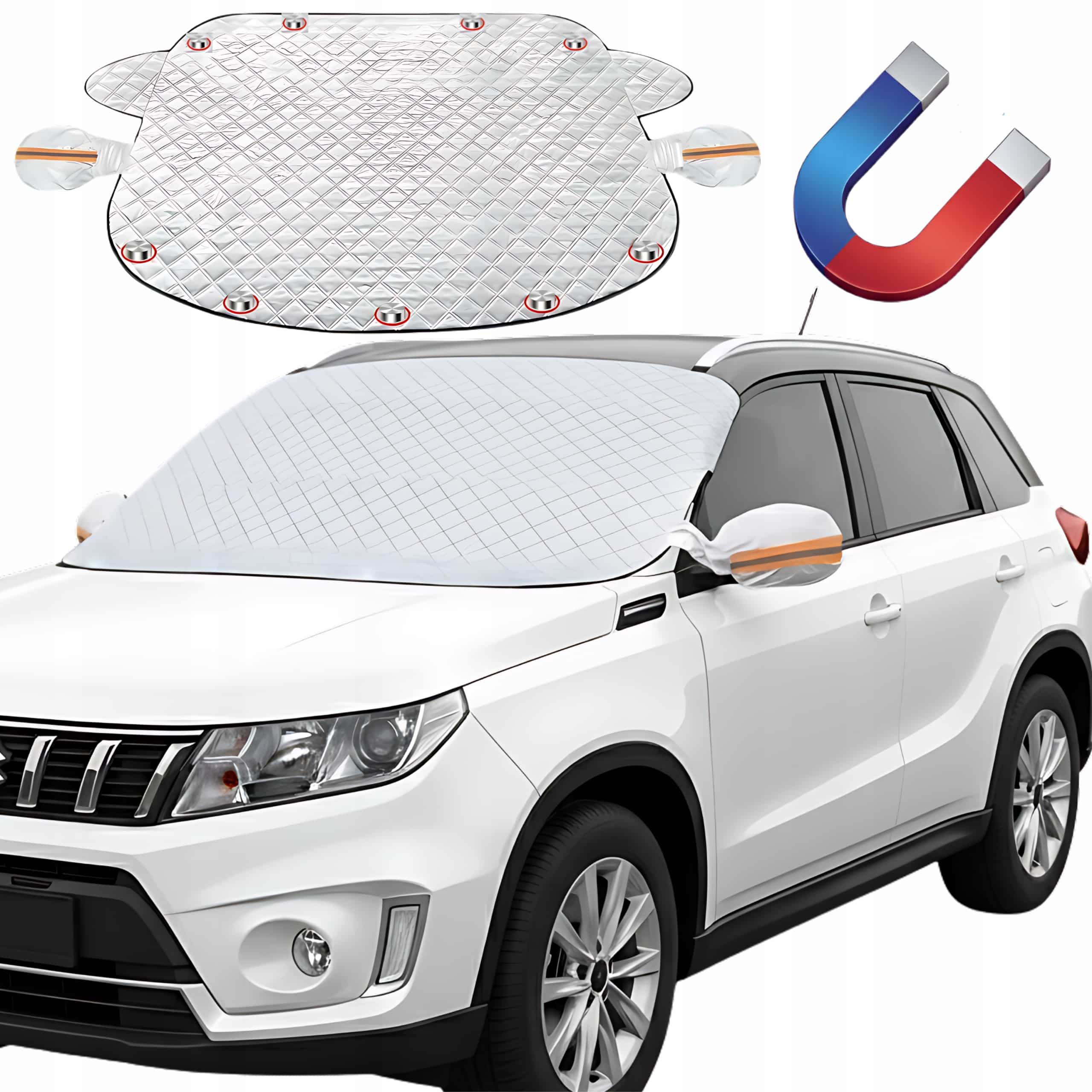 Mata antyszronowa z 9 wbudowanymi magnesami skutecznie chroni przed mrozem, śniegiem, lodem i słońcem, zapewniając czystą szybę o każdej porze roku. Jej szybki montaż oraz nakładki na lusterka z odblaskami zwiększają wygodę i bezpieczeństwo użytkowania. Wodoodporny, trwały materiał oraz uniwersalne wymiary sprawiają, że pasuje do większości samochodów osobowych. Po złożeniu zajmuje niewiele miejsca, dzięki czemu łatwo przechowywać ją w praktycznym opakowaniu. To proste rozwiązanie, które oszczędza czas każdego poranka i chroni auto niezależnie od pogody.