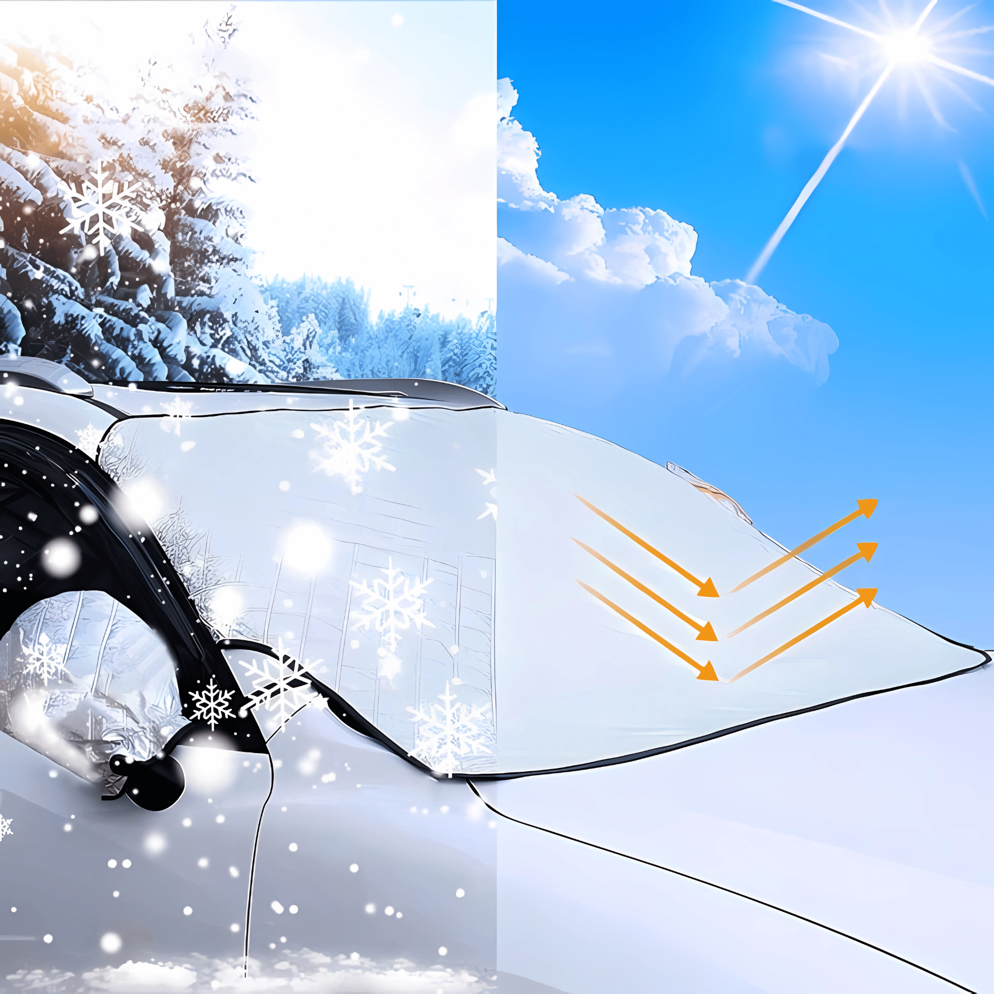 • Nie musisz już tracić czasu na poranne odśnieżanie! Mata skutecznie chroni szybę i lusterka przed mrozem, śniegiem i lodem, ułatwiając przygotowanie pojazdu do drogi.