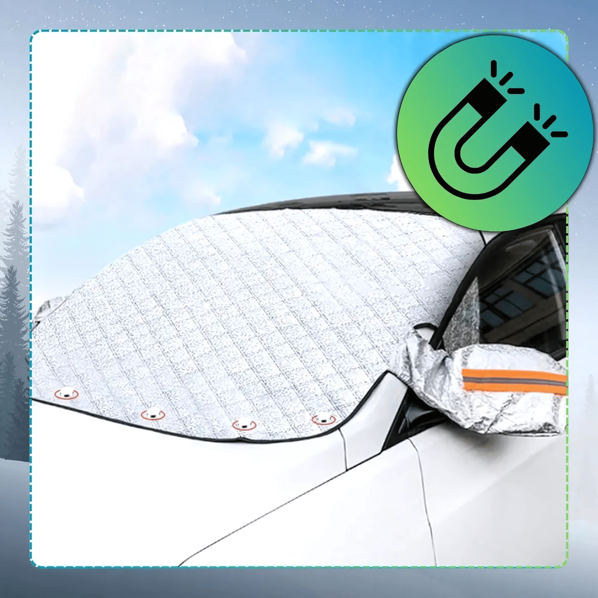 Mata antyszronowa na szybę tworzy skuteczną barierę ochronną pomiędzy szybą pojazdu a zamarzającą wilgocią. Dzięki temu lód i szron nie przywierają bezpośrednio do szkła — wystarczy zdjąć matę i natychmiast możesz ruszać w drogę. Magnesy stabilizują ją nawet przy silnym wietrze, dlatego nie musisz obawiać się, że spadnie w nocy lub podczas opadów.